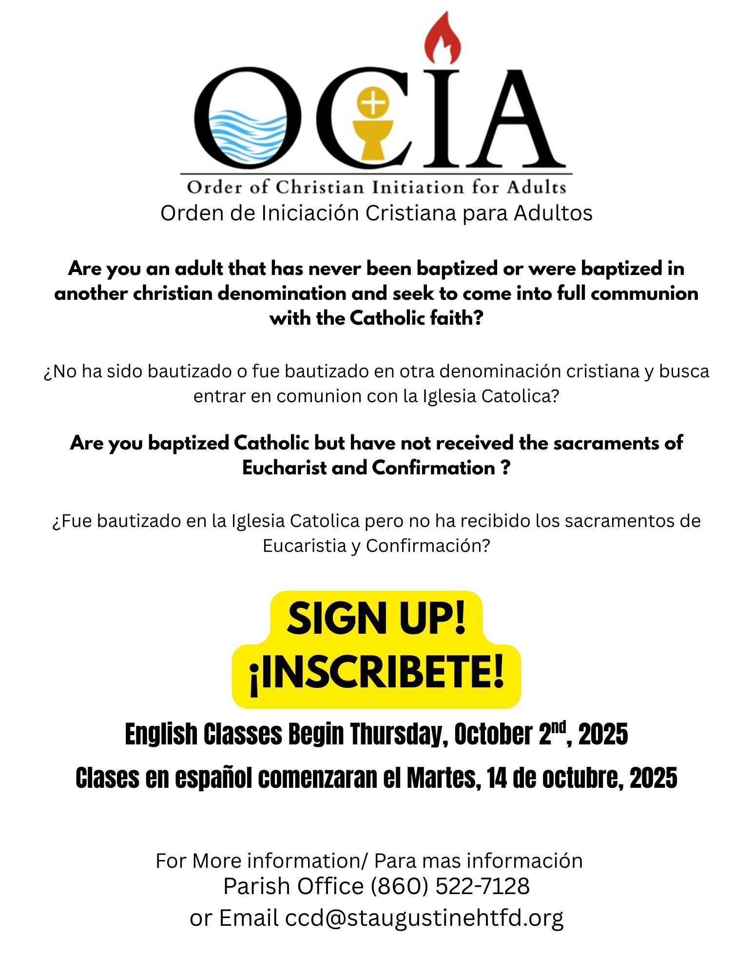 Jennifer Torres, Director of Faith Formation email: staugustine.ccd.dre@gmail.com